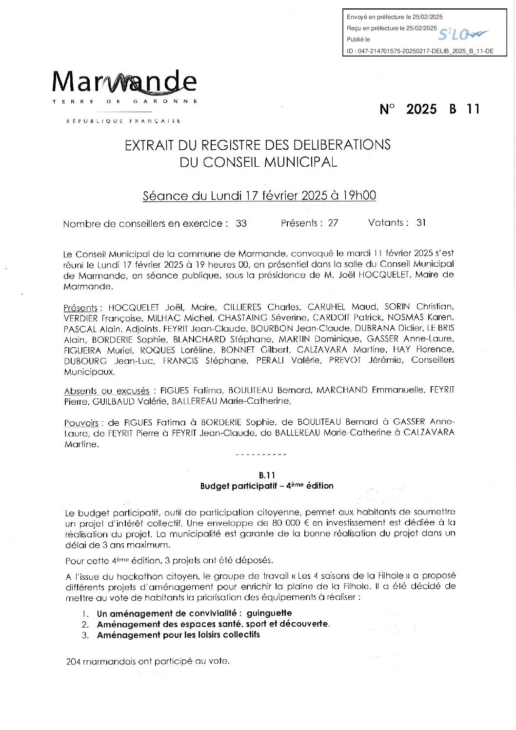 Délibération : 17 février 2025 – Budget Participatif 4e edition