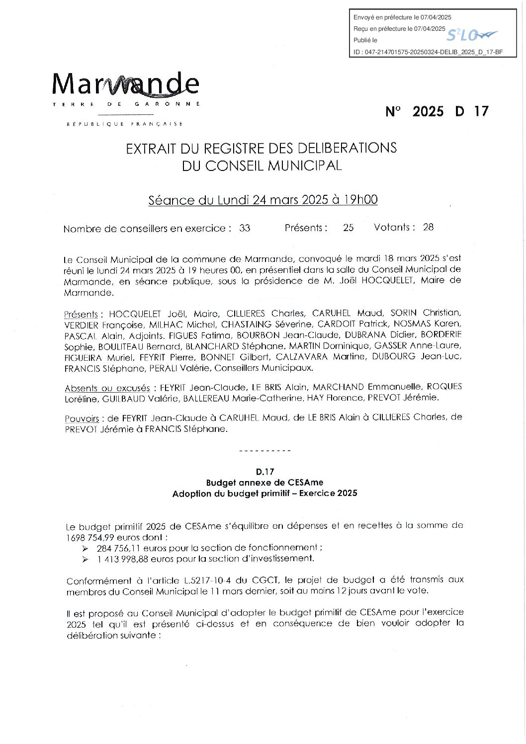 annexe recettes 24 mars 2025 – Budget CESAme 2025