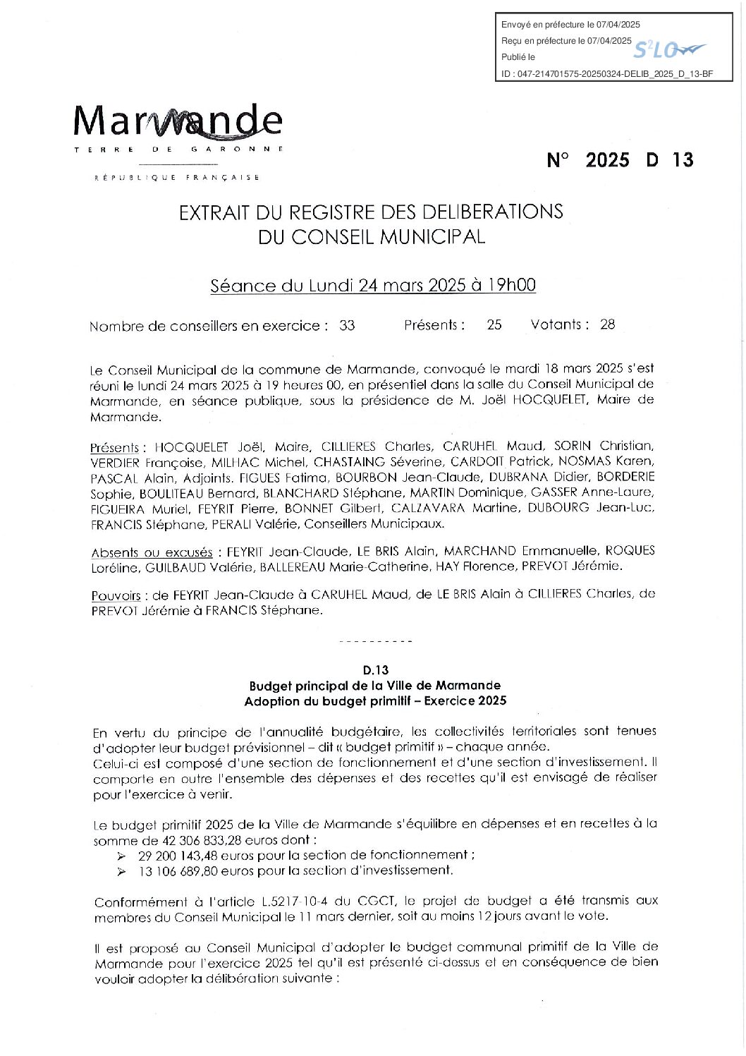 ANNEXE SIGNATURES 24 mars 2025 – Budget Principale ville 2025