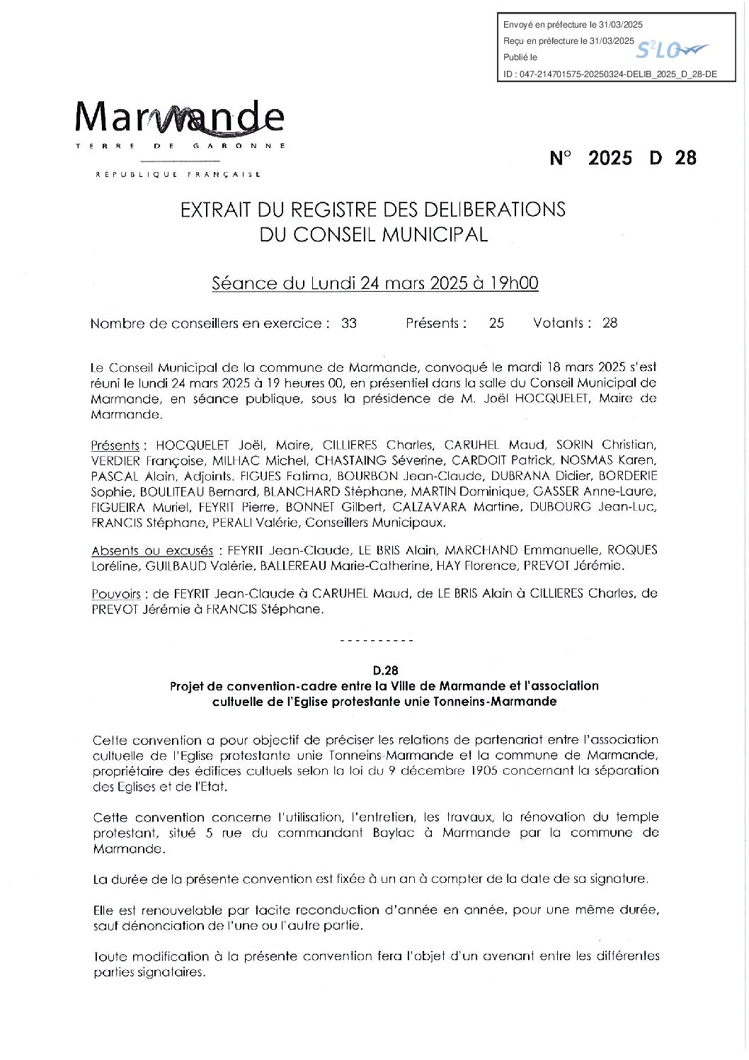Délibération : 24 mars 2025 – Convention temple protestant ville