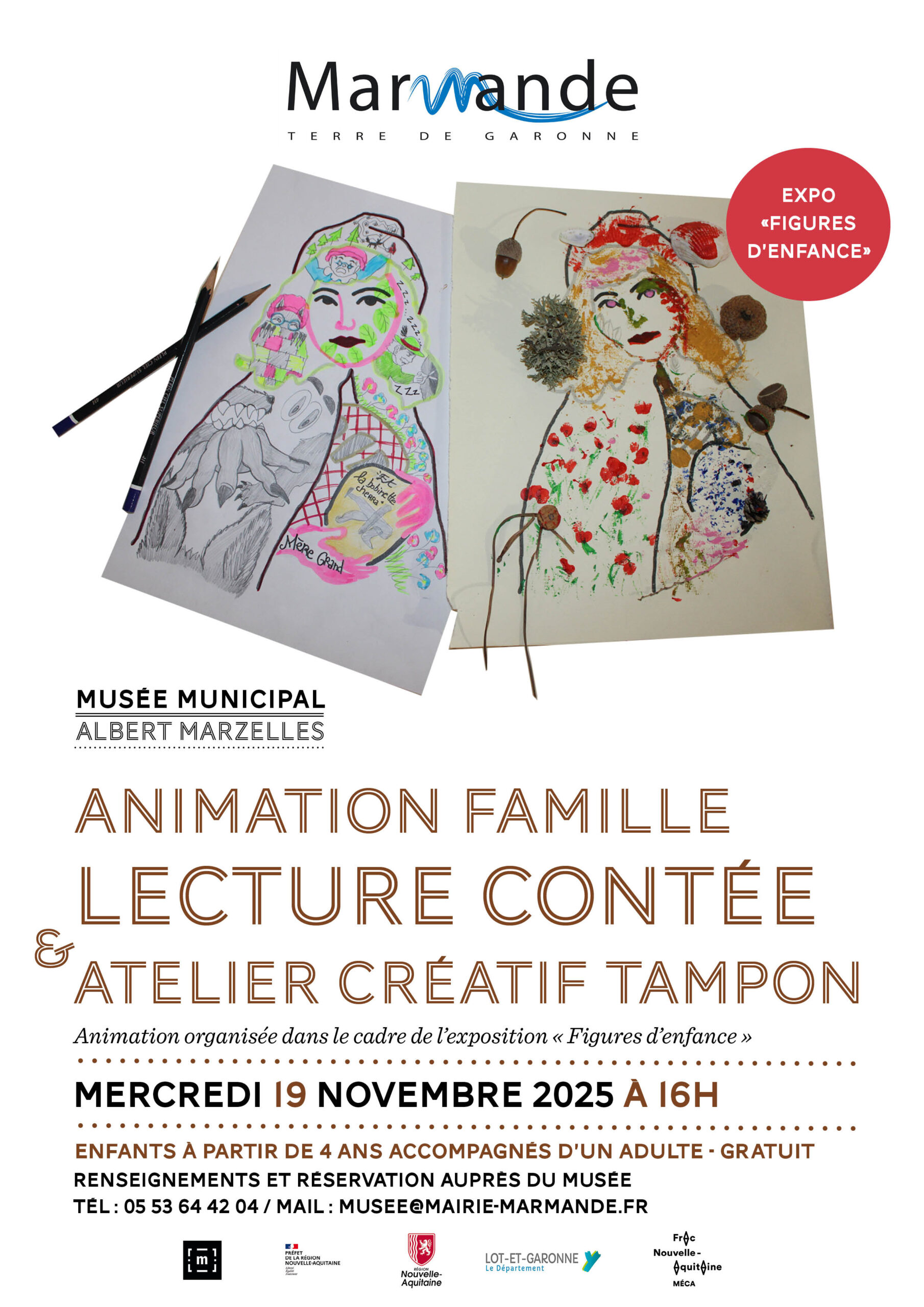 Dans le cadre de l’exposition Figures d’enfance, le musée vous invite à partager un moment en famille autour d’une lecture contée suivie d’un atelier créatif de tampons.