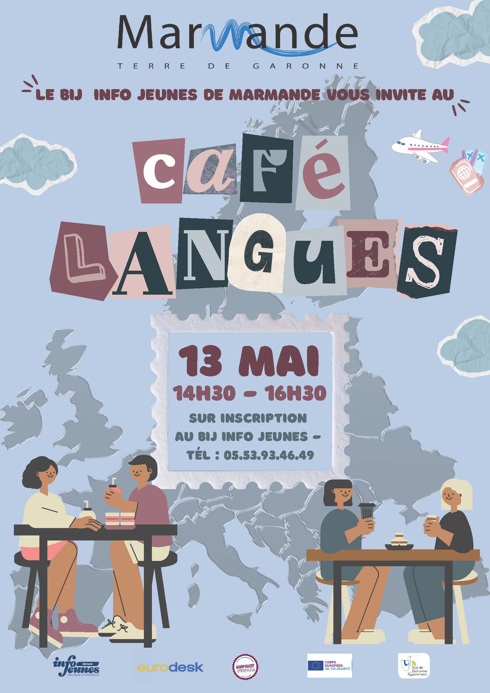 Le Bureau Information Jeunesse (BIJ) de Marmande propose les Cafés Langues, des rencontres destinées aux jeunes de 11 à 20 ans pour s’initier ou se perfectionner en anglais, espagnol et français. Dans une ambiance conviviale et ludique, chaque séance d’une heure permet d’échanger, de pratiquer et de découvrir de nouvelles cultures.