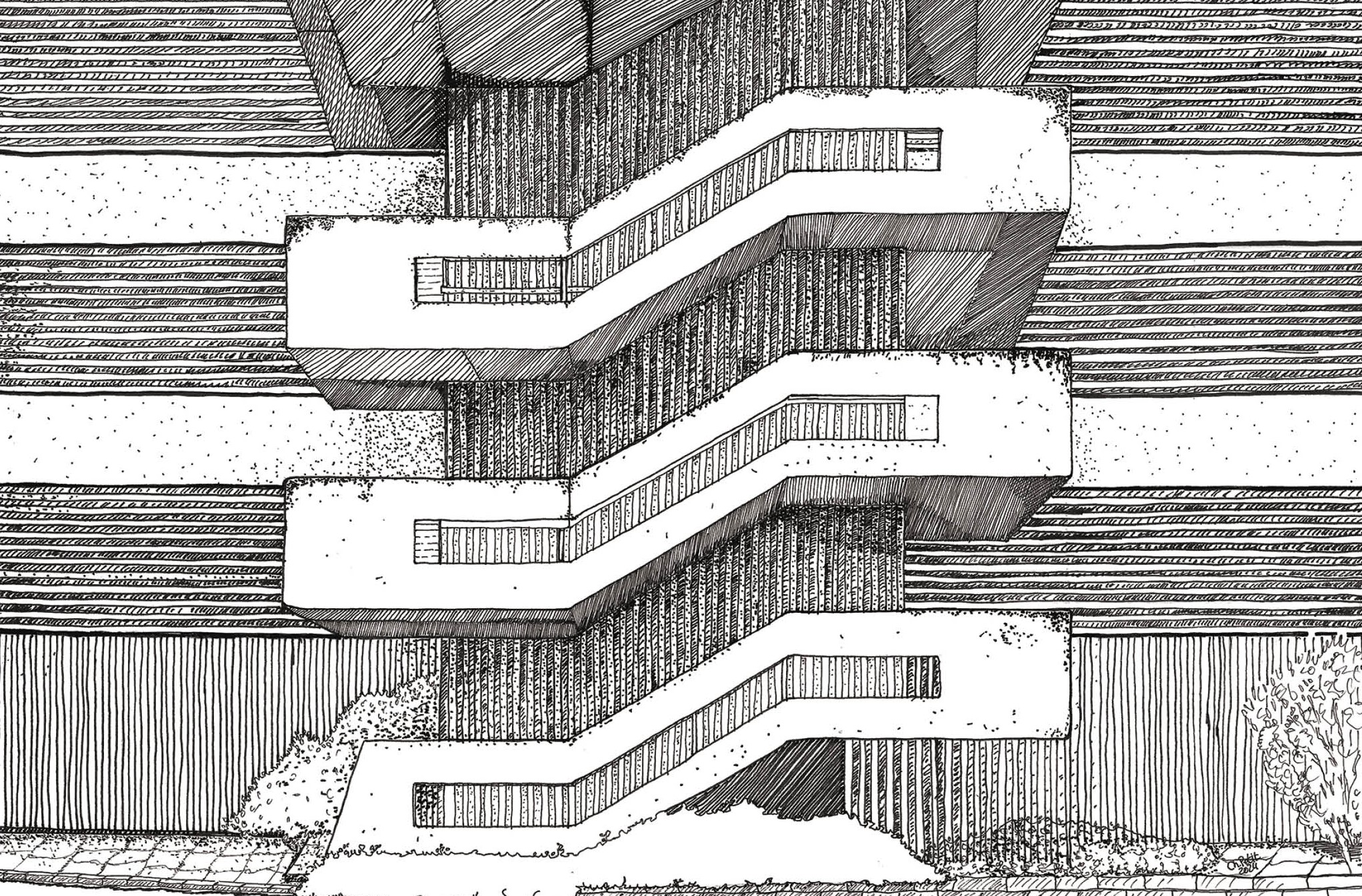 Pour mettre en valeur de façon originale le sujet, je choisis de ne poser sur mon dessin au crayon que de l’encre. Des traits noirs de différentes finesses font alors apparaître ombres et contours. Ainsi, la couleur attendue a laissé sa place aux lignes noires.