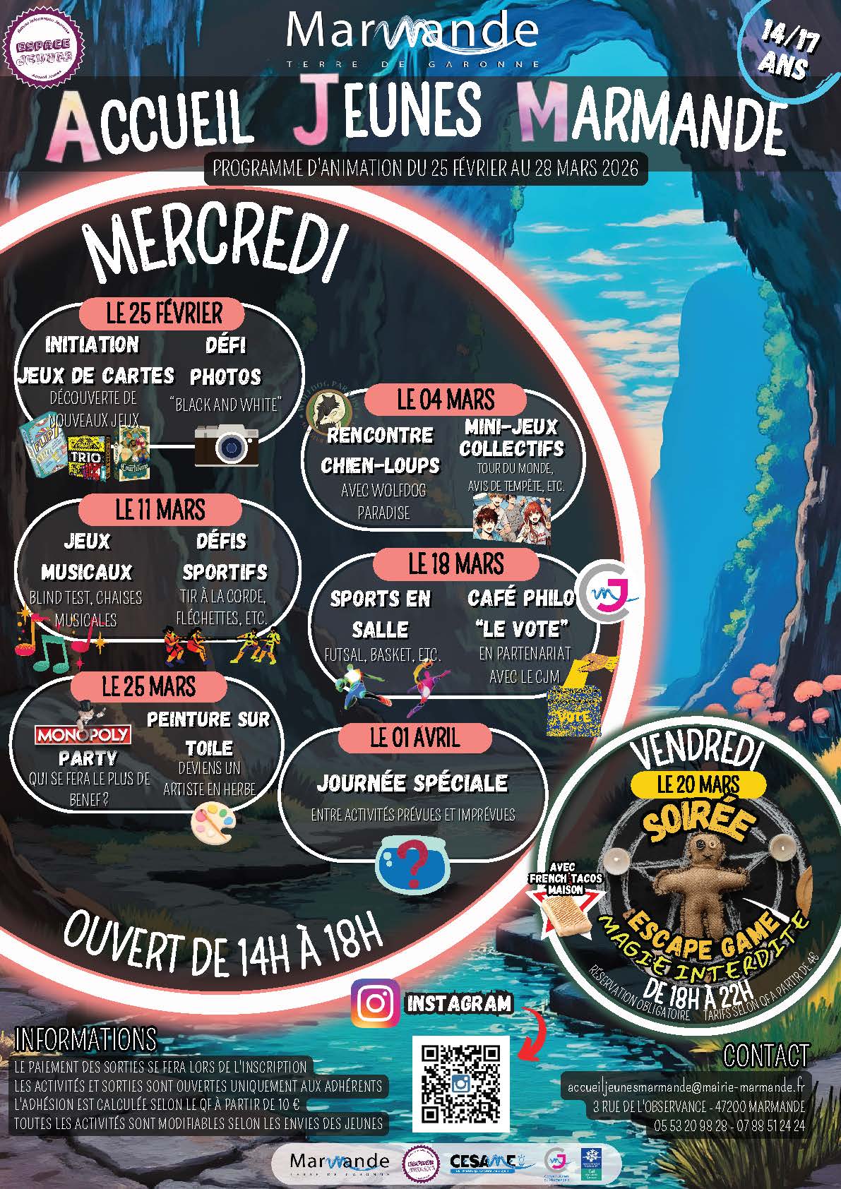 - Le programme est modifiable selon les envies des jeunes : leur participation et leurs idées sont les bienvenues !