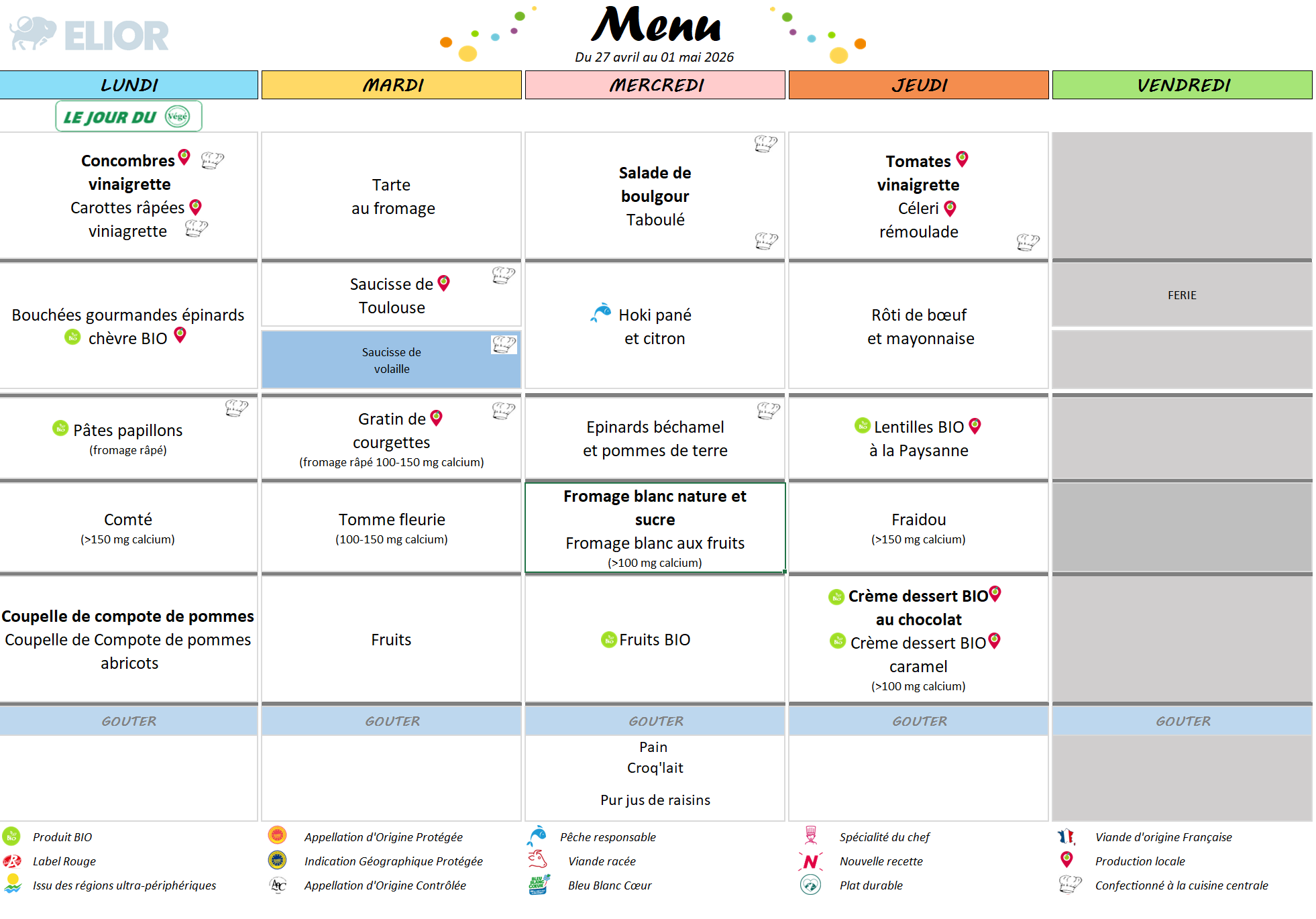Les menus sont établis par le diététicien du prestataire et soumis à validation du service restauration scolaire.
